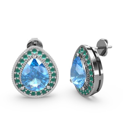 Akuamarin ve kök zümrüt 18 ayar beyaz altın küpe