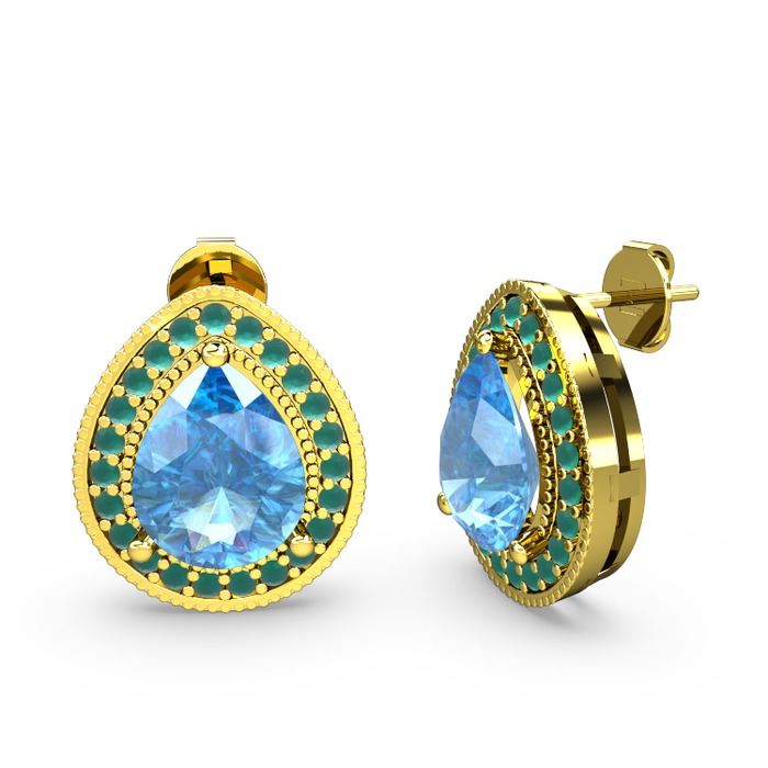 Akuamarin ve kök zümrüt 8 ayar altın küpe