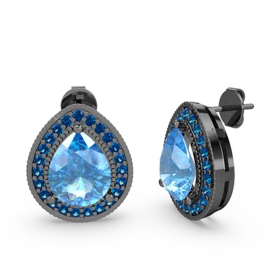 Akuamarin ve lab safir 925 ayar siyah rodyum kaplama gümüş küpe