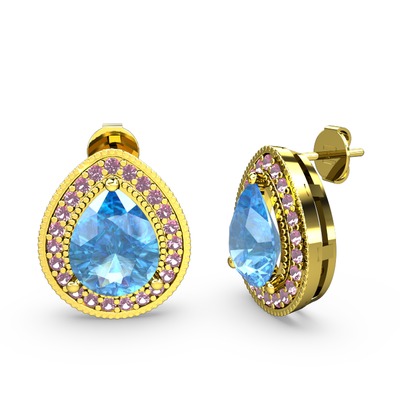 Akuamarin ve pembe kuvars 925 ayar altın kaplama gümüş küpe