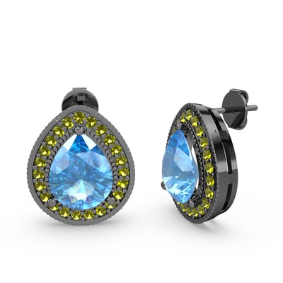 Akuamarin ve peridot 925 ayar siyah rodyum kaplama gümüş küpe