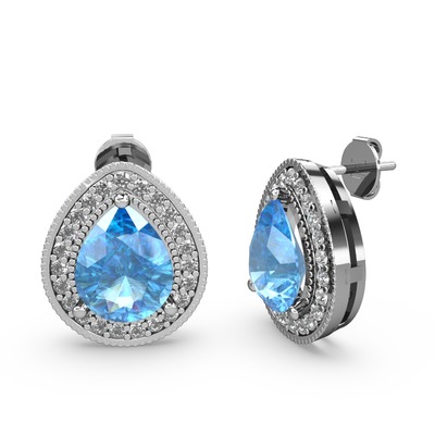 Akuamarin ve pırlanta 925 ayar gümüş küpe (0.528 karat)