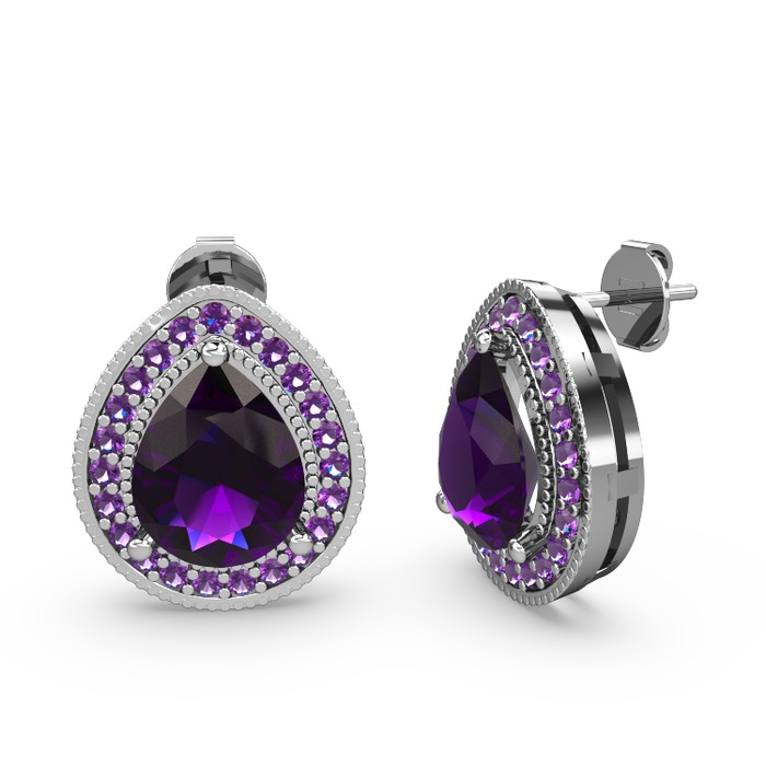 Ametist 14 ayar beyaz altın küpe