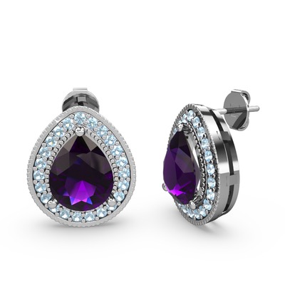 Ametist ve akuamarin 8 ayar beyaz altın küpe