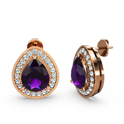 Ametist ve akuamarin 925 ayar rose altın kaplama gümüş küpe