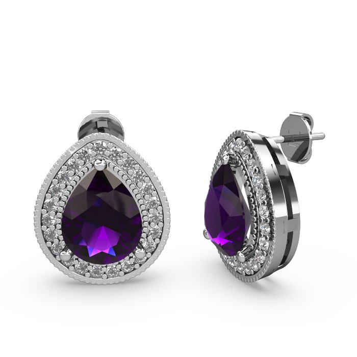 Ametist ve beyaz zirkon 14 ayar beyaz altın küpe