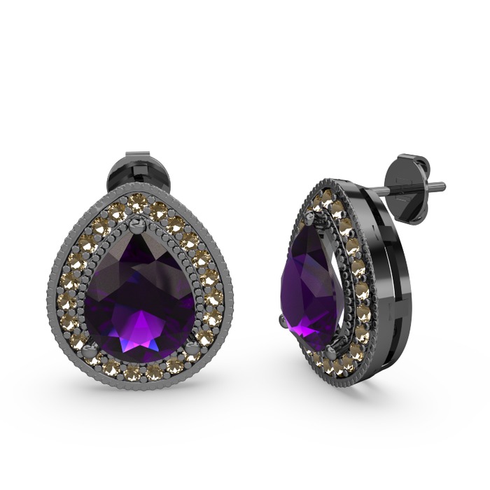 Ametist ve dumanlı kuvars 925 ayar siyah rodyum kaplama gümüş küpe