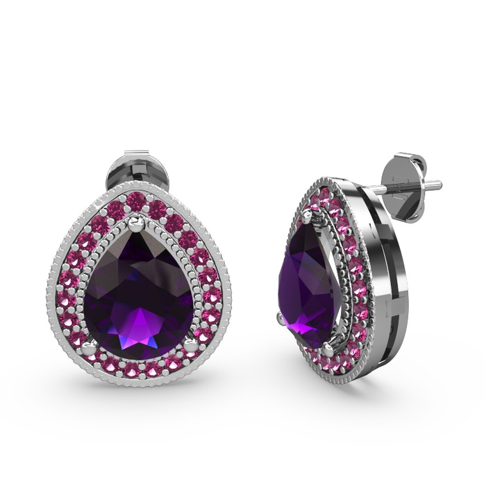 Ametist ve rodolit garnet 18 ayar beyaz altın küpe
