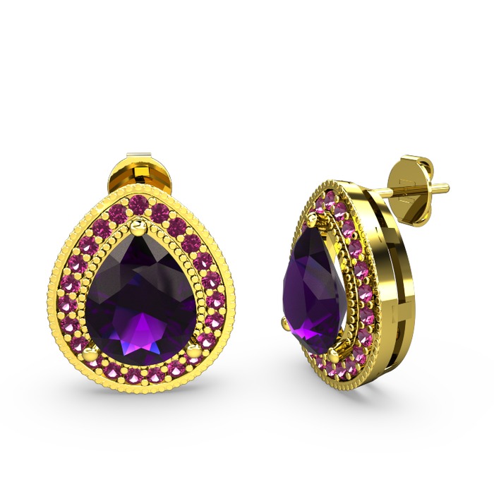 Ametist ve rodolit garnet 8 ayar altın küpe