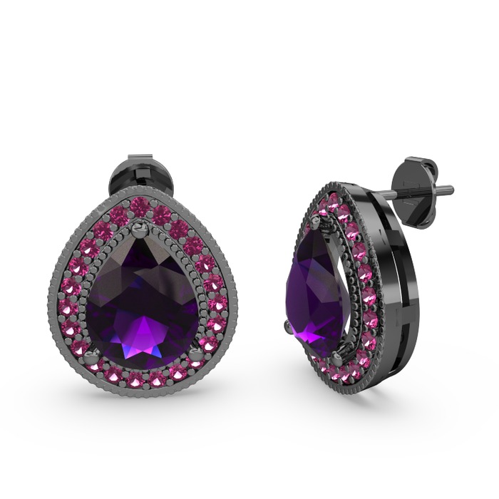 Ametist ve rodolit garnet 925 ayar siyah rodyum kaplama gümüş küpe