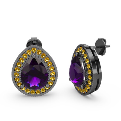 Ametist ve sitrin 925 ayar siyah rodyum kaplama gümüş küpe
