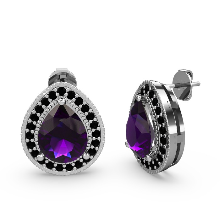 Ametist ve siyah zirkon 8 ayar beyaz altın küpe