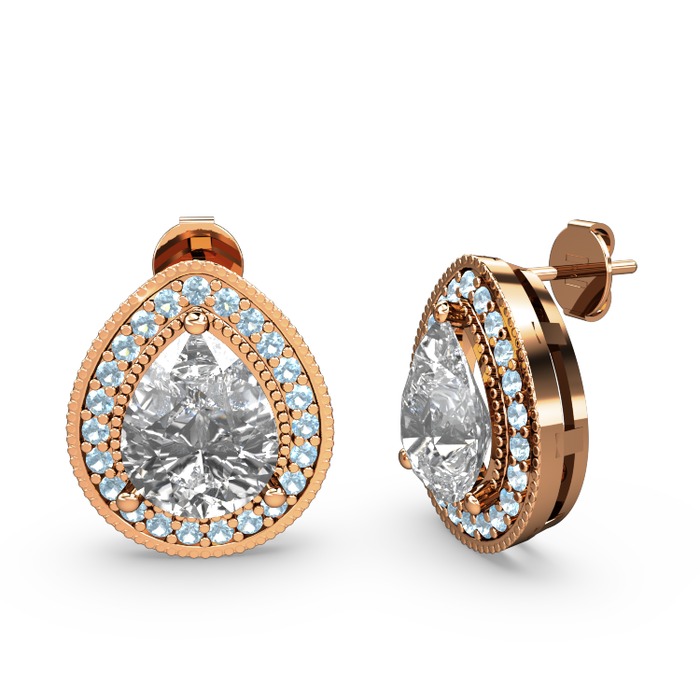 Beyaz zirkon ve akuamarin 925 ayar rose altın kaplama gümüş küpe