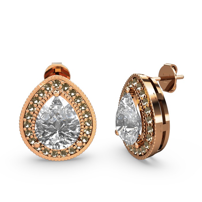 Beyaz zirkon ve dumanlı kuvars 18 ayar rose altın küpe