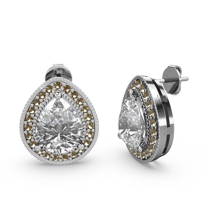 Beyaz zirkon ve dumanlı kuvars 925 ayar gümüş küpe
