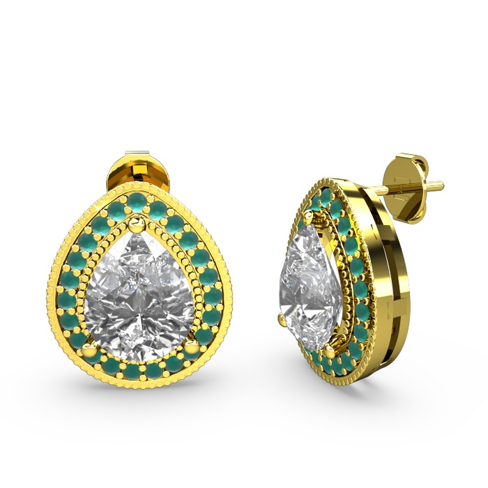 Beyaz zirkon ve kök zümrüt 18 ayar altın küpe