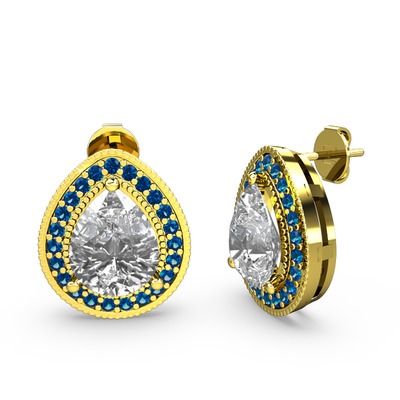 Beyaz zirkon ve lab safir 925 ayar altın kaplama gümüş küpe