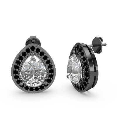 Beyaz zirkon ve siyah zirkon 925 ayar siyah rodyum kaplama gümüş küpe