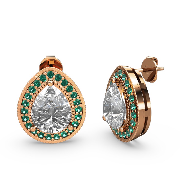 Beyaz zirkon ve yeşil kuvars 8 ayar rose altın küpe