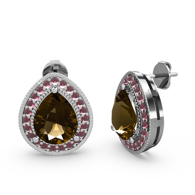 Dumanlı kuvars ve kök yakut 18 ayar beyaz altın küpe