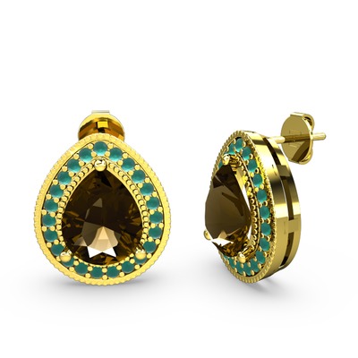 Dumanlı kuvars ve kök zümrüt 18 ayar altın küpe