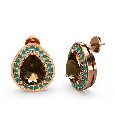 Dumanlı kuvars ve kök zümrüt 8 ayar rose altın küpe