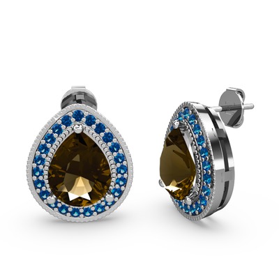 Dumanlı kuvars ve lab safir 925 ayar gümüş küpe