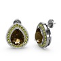 Dumanlı kuvars ve peridot 18 ayar beyaz altın küpe
