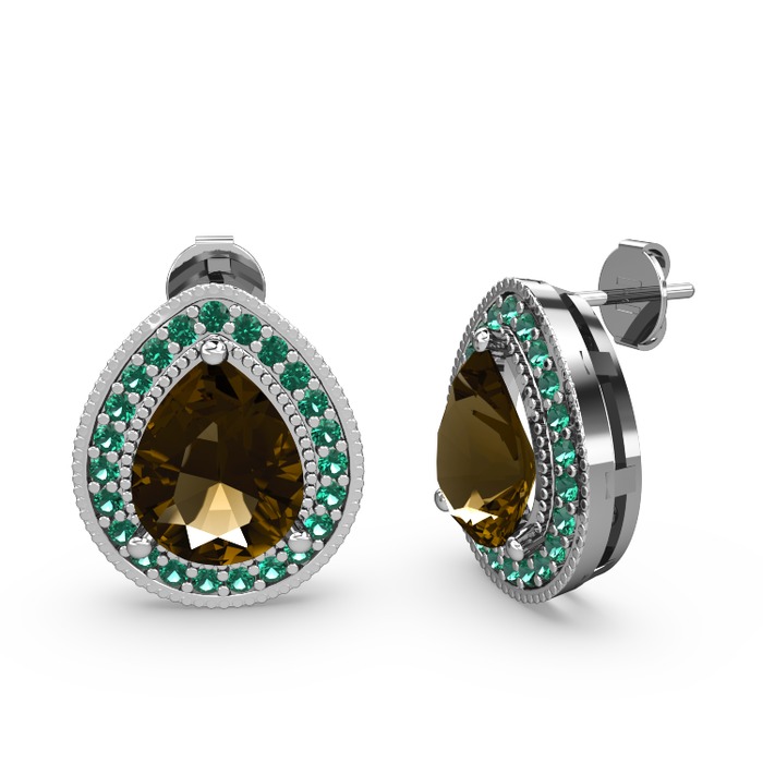 Dumanlı kuvars ve yeşil kuvars 18 ayar beyaz altın küpe