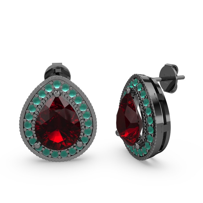 Garnet ve kök zümrüt 925 ayar siyah rodyum kaplama gümüş küpe