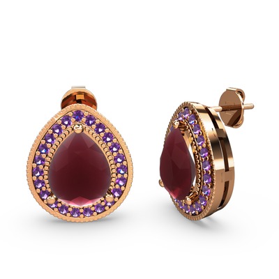 Kök yakut ve ametist 925 ayar rose altın kaplama gümüş küpe