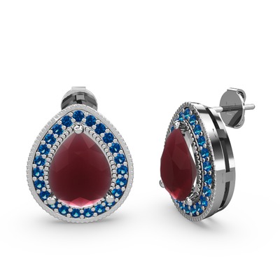 Kök yakut ve lab safir 18 ayar beyaz altın küpe