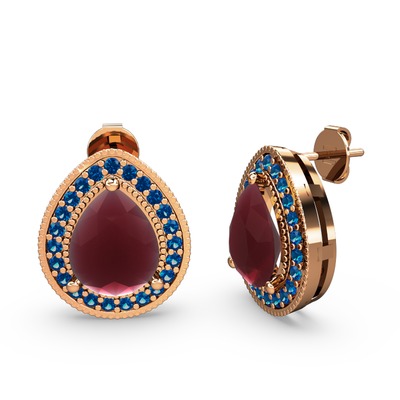 Kök yakut ve lab safir 8 ayar rose altın küpe