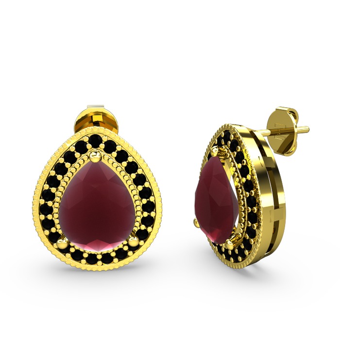 Kök yakut ve siyah zirkon 8 ayar altın küpe