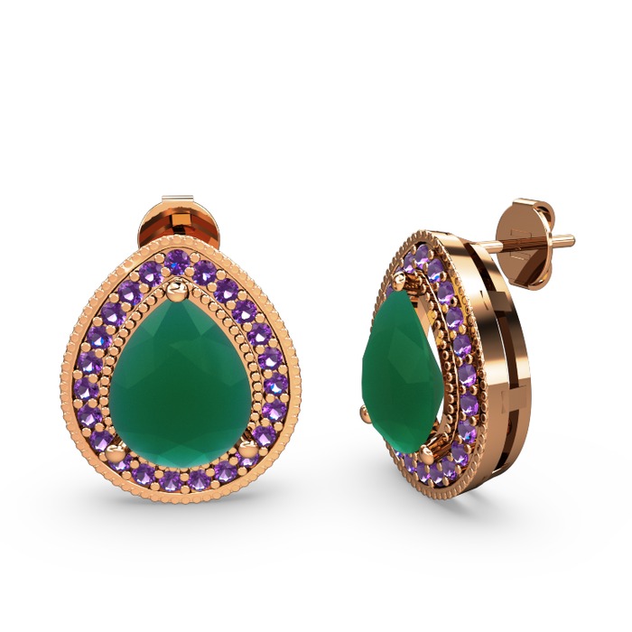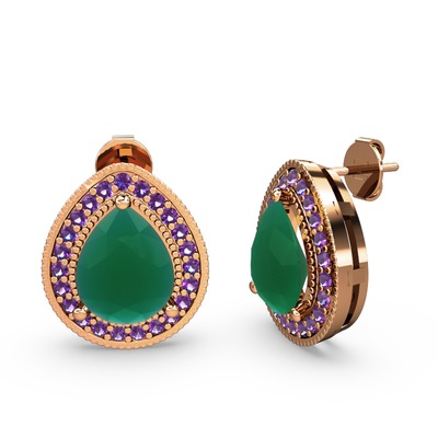 Kök zümrüt ve ametist 14 ayar rose altın küpe