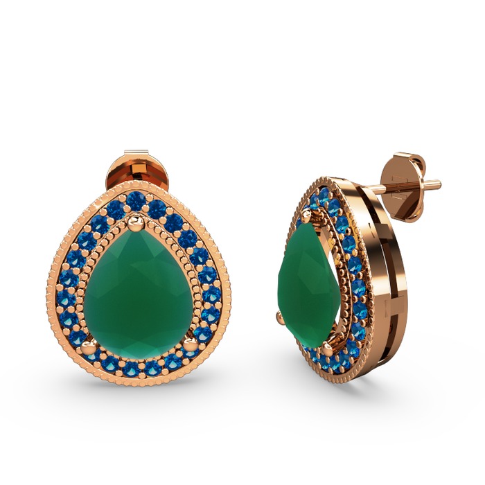 Kök zümrüt ve lab safir 18 ayar rose altın küpe