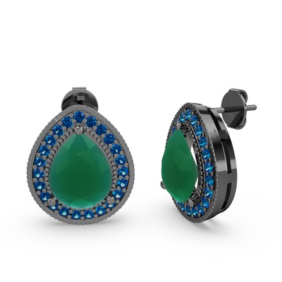 Kök zümrüt ve lab safir 925 ayar siyah rodyum kaplama gümüş küpe