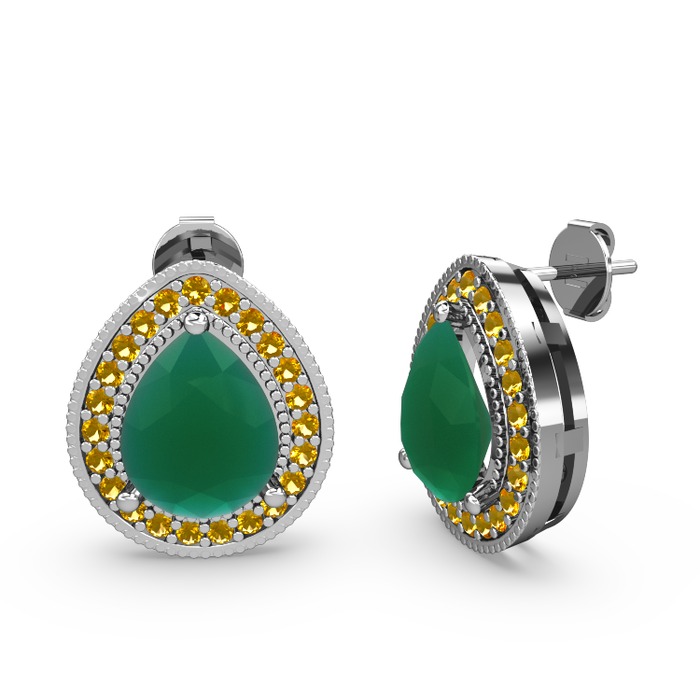 Kök zümrüt ve sitrin 14 ayar beyaz altın küpe