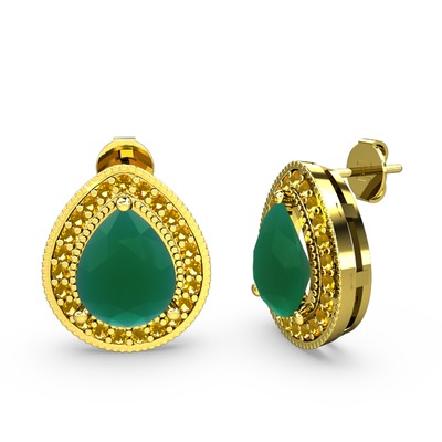 Kök zümrüt ve sitrin 925 ayar altın kaplama gümüş küpe