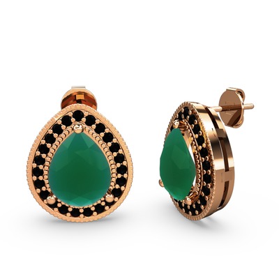 Kök zümrüt ve siyah zirkon 8 ayar rose altın küpe