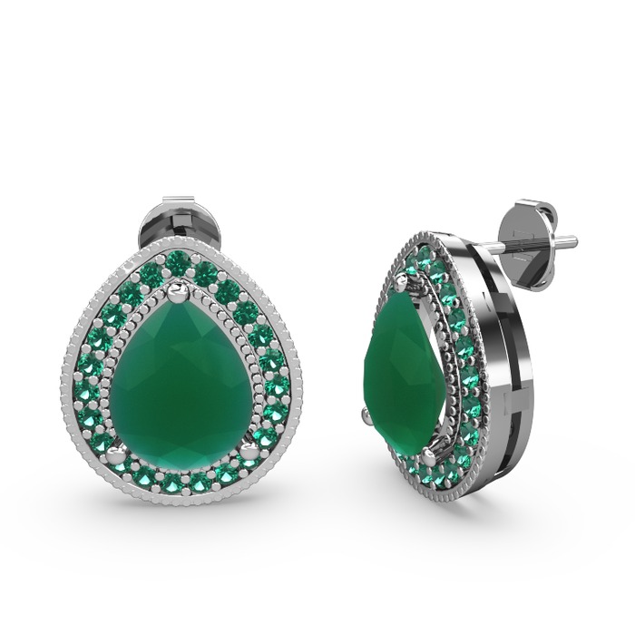 Kök zümrüt ve yeşil kuvars 18 ayar beyaz altın küpe