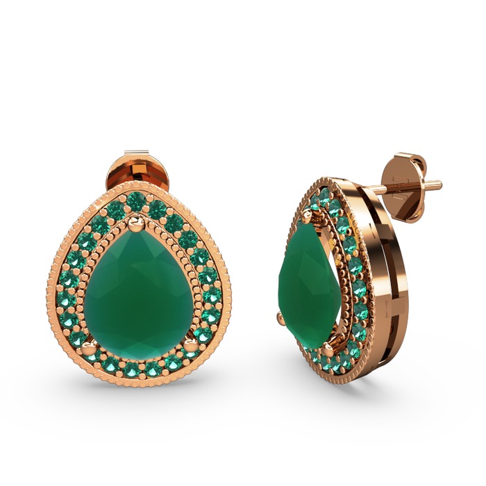 Kök zümrüt ve yeşil kuvars 8 ayar rose altın küpe