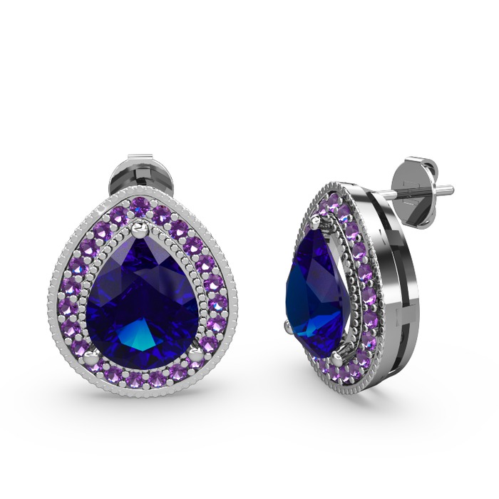 Lab safir ve ametist 8 ayar beyaz altın küpe