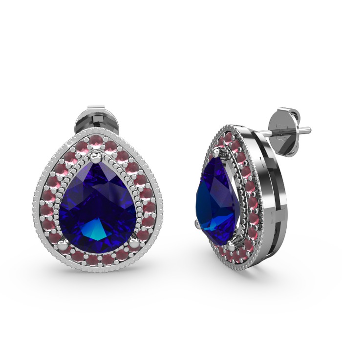 Lab safir ve kök yakut 14 ayar beyaz altın küpe