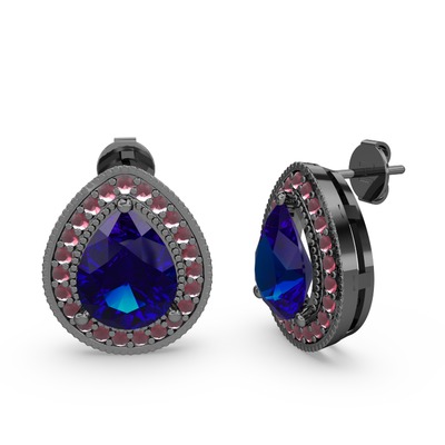 Lab safir ve kök yakut 925 ayar siyah rodyum kaplama gümüş küpe