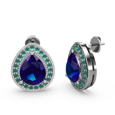 Lab safir ve kök zümrüt 8 ayar beyaz altın küpe
