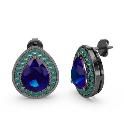 Lab safir ve kök zümrüt 925 ayar siyah rodyum kaplama gümüş küpe