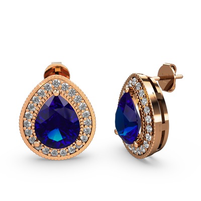 Lab safir ve pırlanta 14 ayar rose altın küpe (0.528 karat)