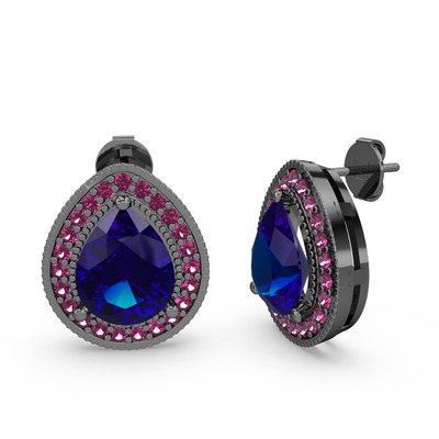 Lab safir ve rodolit garnet 925 ayar siyah rodyum kaplama gümüş küpe