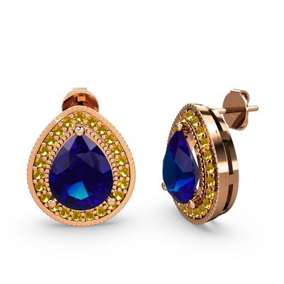 Lab safir ve sitrin 8 ayar rose altın küpe